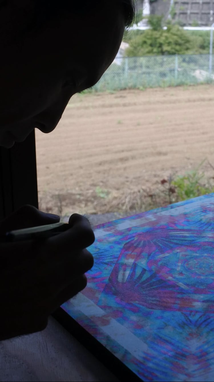 さらに雲母やパール粉を含む岩絵具で仕上げました。